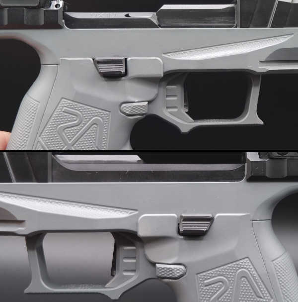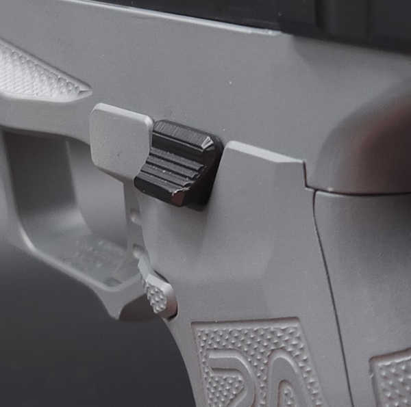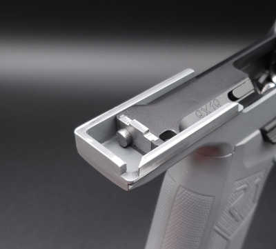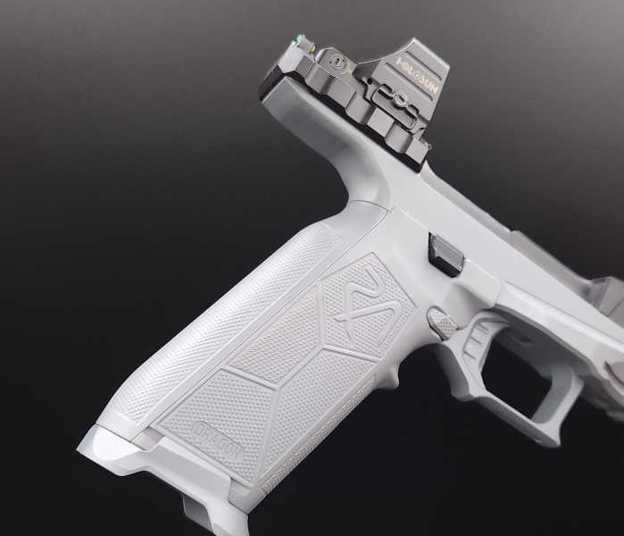 The grip module, backstrap, and mag funnel can all be quickly and tool-lessly swapped. Future accessory offerings will include a range of grip and backstrap sizes and texture patterns. The Dragon can be operated with the competition mag funnel installed or removed.