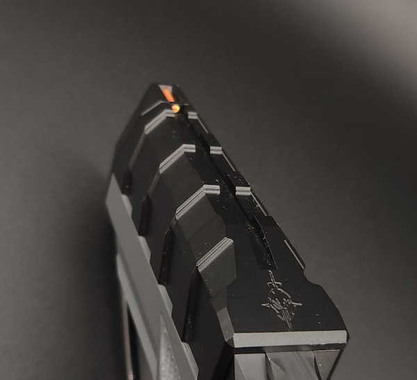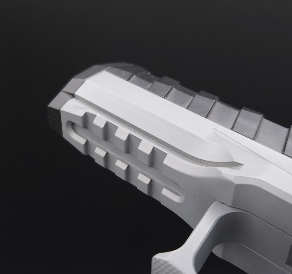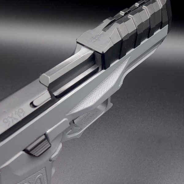 The Bolt Carrier takes the place of a traditional slide. It features deep cut fully wrapped serrations providing excellent grip to operate the action.