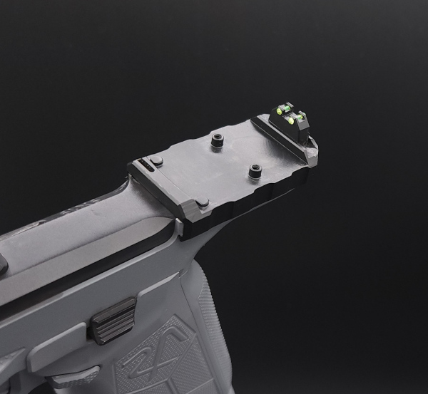 Incorporating the most popular optic footprint, RMR. Future accessory offerings will include additional industry optic footprints as well as a "iron" only fully adjustable rear sights.